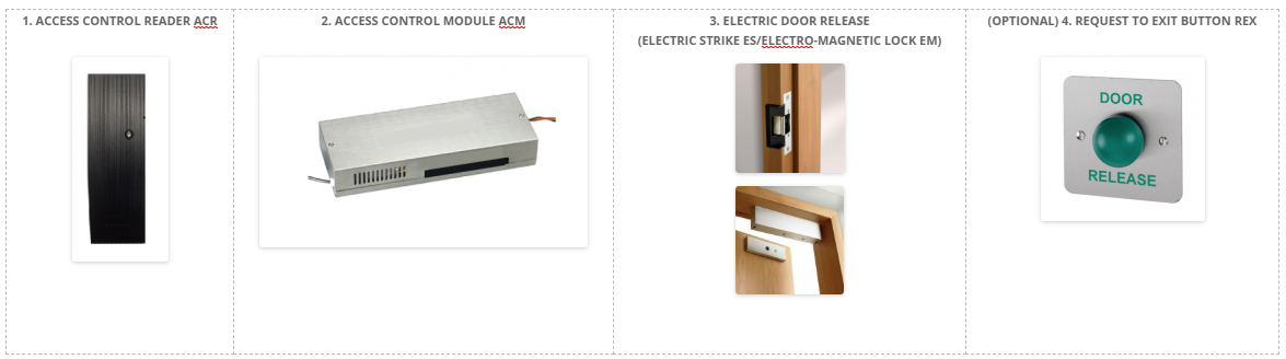 Access Control Module: 1 x 240 VAC inside the door in a secure, out-of-reach location.